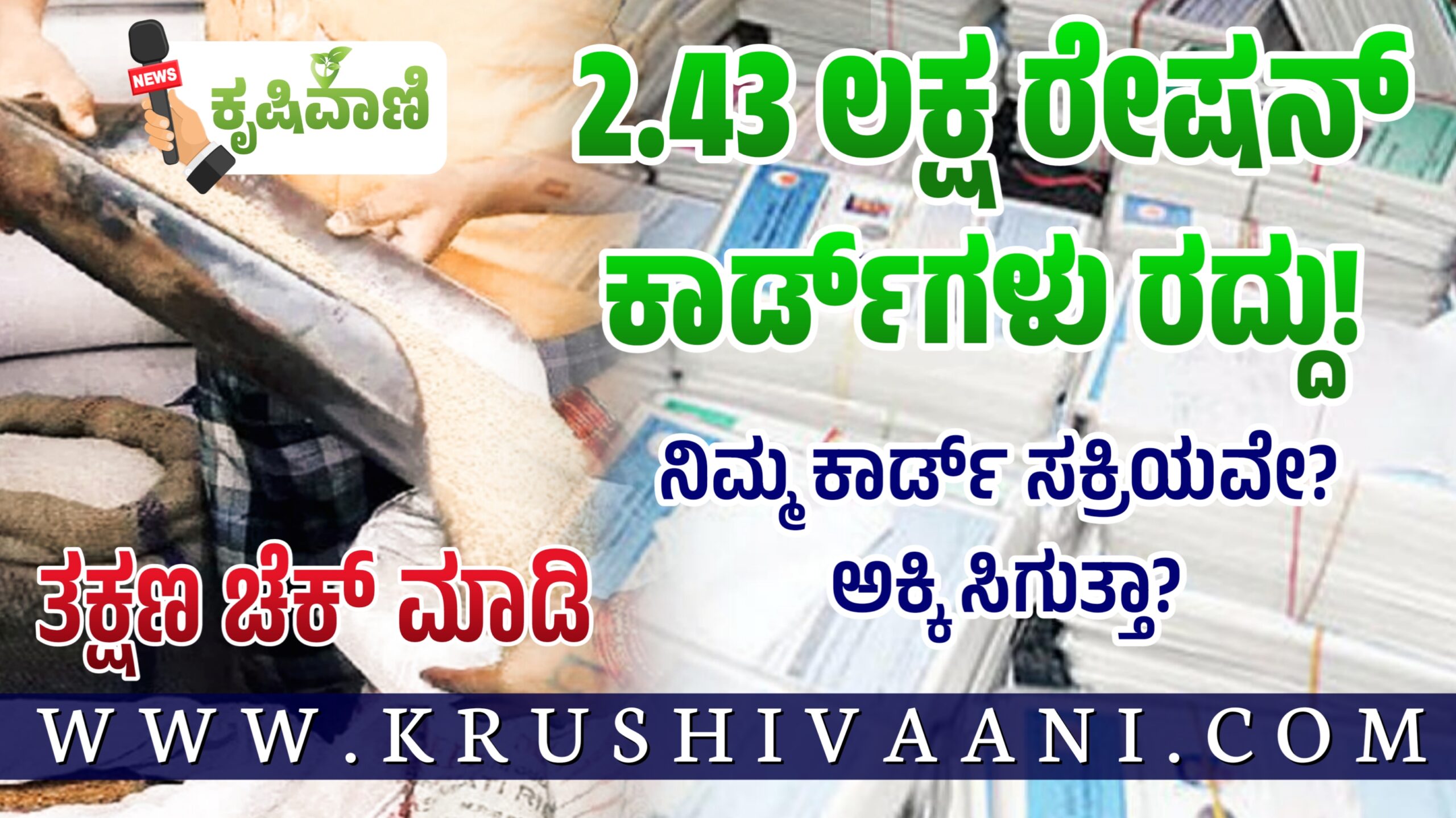 ರೇಷನ್ ಕಾರ್ಡ್ಗಳು ರದ್ದು : ರಾಜ್ಯದಲ್ಲಿ ಅನರ್ಹರು ಹೊಂದಿದ್ದ 2.43 ಲಕ್ಷ ಪಡಿತರ ಚೀಟಿಗಳನ್ನು (Ration Cards) ರದ್ದುಗೊಳಿಸಲಾಗಿದೆ ಎಂದು ಕೇಂದ್ರ ಸರ್ಕಾರ ಅಧಿಕೃತವಾಗಿ ತಿಳಿಸಿದೆ. ಈ ಕ್ರಮವನ್ನು ತಂತ್ರಜ್ಞಾನ ಮತ್ತು ಆಧಾರ್ ಲಿಂಕ್ ಪರಿಶೀಲನೆ ಮೂಲಕ ಕೈಗೊಳ್ಳಲಾಗಿದೆ. ಈ ಕೆಳಗಿನ ಕಾರಣಗಳಿಂದ ಕಾರ್ಡ್ಗಳನ್ನು ರದ್ದು ಮಾಡಲಾಗಿದೆ ಎಂದು ರಾಜ್ಯದ ಆಹಾರ ಸಚಿವರು ಲೋಕಸಭೆಯಲ್ಲಿ ತಿಳಿಸಿದ್ದಾರೆ. ಆಧಾರ್ ಲಿಂಕ್ ಆಗದಿರುವುದು, ನಿಗದಿತ ಸಮಯದಲ್ಲಿ ಇ-ಕೆವೈಸಿ ಮಾಡಿಸದ ಕಾರ್ಡ್ಗಳು ಡಿಲೀಟ್. ರೇಷನ್ ಕಾರ್ಡ್ ರದ್ದು ಮಾಡಿರೋದು ರಾಜ್ಯ ಸರ್ಕಾರವಲ್ಲ, ಕೇಂದ್ರ ಸರ್ಕಾರ ಸಾರ್ವಜನಿಕರಿಗೆ ನೆನಪಿದ್ಯೋ ಇಲ್ಲವೋ ಗೊತ್ತಿಲ್ಲ ಮೊದಲು ರೇಷನ್ ಕಾರ್ಡ್ ಗೆ ಆಧಾರ್ ಸಂಖ್ಯೆ, ಆ ಬಳಿಕ ಆಧಾರ್ ಗೆ ಪ್ಯಾನ್ ನಂಬರ್ ಕೂಡ ಲಿಂಕ್ ಮಾಡಲು ಕೇಂದ್ರ ಸರ್ಕಾರ ಸೂಚಿಸಿತ್ತು. ಅದರಂತೆ ಎಲ್ಲರೂ ರೇಷನ್ ಕಾರ್ಡ್ ಗೆ ಕುಟುಂಬದ ಎಲ್ಲಾ ಸದಸ್ಯರ ಆಧಾರ್ ಸಂಖ್ಯೆಯನ್ನು ಲಿಂಕ್ ಮಾಡಲಾಗಿತ್ತು. ಇ-ಕೆವೈಸಿ ಮೂಲಕ ಒಪ್ಪಿಗೆಯನ್ನೂ ಸೂಚಿಸಲಾಗಿತ್ತು.