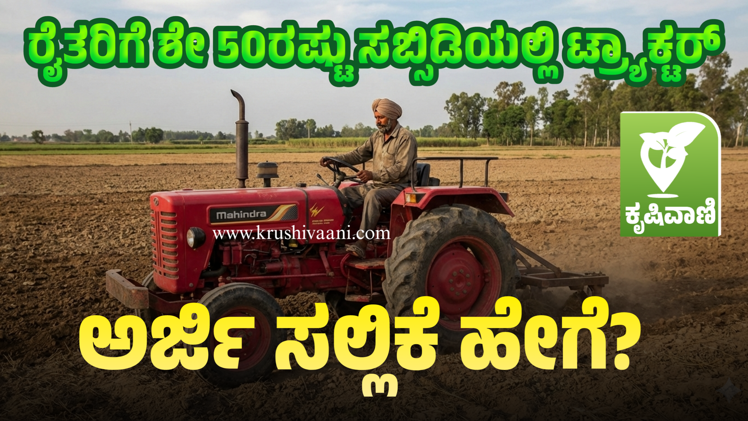 ರೈತರು ಅಧುನಿಕ ತಂತ್ರಜ್ಞಾನವನ್ನು ಬಳಸುವ ಮೂಲಕ ಸ್ವಾವಲಂಬಿಗಳಾಗಬೇಕು ಎಂಬುದು ಕೇಂದ್ರ ಸರ್ಕಾರದ ಮಹತ್ವಾಕಾಂಕ್ಷೆಯಾಗಿದೆ. ಆದ್ದರಿಂದಲೇ ರೈತರಿಗಾಗಿ ಹೊಸ ಹೊಸ ಯೋಜನೆಗಳನ್ನು ಜಾರಿಗೆ ತಂದಿದೆ. ಸ್ವಂತ ಟ್ರ್ಯಾಕ್ಟರ್ ಇರಬೇಕು ಎಂಬುದು ಪ್ರತಿಯೊಬ್ಬ ರೈತನ ಕನಸಾಗಿದೆ. ಆದರೆ, ಆ ಕನಸನ್ನು ನನಸಾಗಿಸುವುದಕ್ಕೆ ಹಣ ಹೇಗೆ ಹೊಂದಿಸಬೇಕು ಎಂಬುದು ಹಲವರಿಗೆ ಚಿಂತೆಯಾಗಿದೆ. ಆದರೆ, ಇನ್ನು ಮೇಲೆ ಆ ಚಿಂತೆ ಬೇಡ. ನಿಮ್ಮ ಟ್ರ್ಯಾಕ್ಟರ್ ಕನಸನ್ನು ನನಸು ಮಾಡಲು ಕೇಂದ್ರ ಸರ್ಕಾರವೇ ಸಹಾಯ ಮಾಡುತ್ತದೆ. ಟ್ರ್ಯಾಕ್ಟರ್ ಖರೀದಿಸುವುದಕ್ಕೆ ಬರೋಬರಿ ಶೇಕಡ 50ರಷ್ಟು ಸಬ್ಸಿಡಿ (ಸಹಾಯಧನ) ನೀಡುತ್ತಿದೆ. ಅಂದರೆ ₹10 ಲಕ್ಷದ ಟ್ರ್ಯಾಕ್ಟರ್ ನಿಮಗೆ ಕೇವಲ ₹5 ಲಕ್ಷಕ್ಕೆ ಸಿಗುತ್ತದೆ.